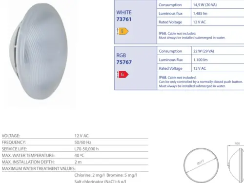 COMPONENTI PER COSTRUZIONE, FARI, ILLUMINAZIONE, NICCHIE, PER ACCESSORI VASCA, RICAMBI PISCINA