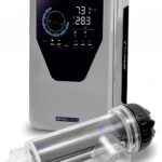Elettrolizzatore al sale autopulente con inversione di polarità. Per piscine da 30 a 75 m3. Design compatto. Regolazione manuale della produzione (dallo 0 al 100%).