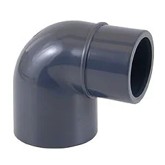 Gomito 90° ridotto in pvc per incollaggio con tubo realizzato in pvc-u per pressione PN16.