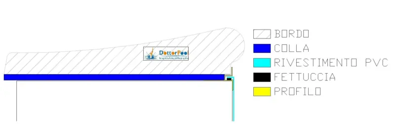 PROFILO DA INSTALLARE SOTTO AL BORDO DELLE PISCINE A SKIMMER IN FASE DI COSTRUZIONE