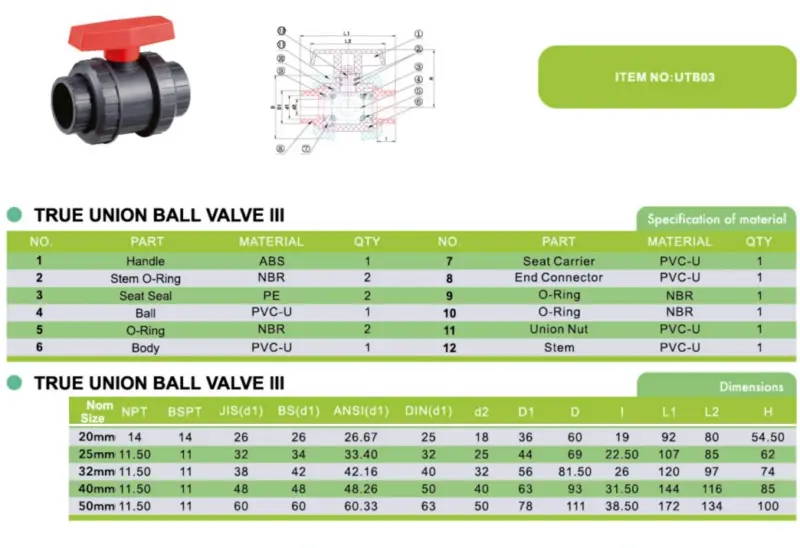 ERA PVC VALVE, PVC True Union Ball Valve III, UTB03, PN10 (F1970), NSF-pw e UPC